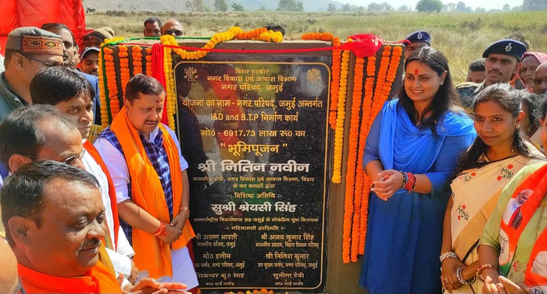 बिहार सरकार नगर विकास एवं आवास विभाग के मंत्री नितिन नवीन गुरुवार को जमुई पहुंचे, जहां कार्यकर्ताओं व समर्थकों ने उनका भव्य स्वागत किया। गुरुवार की सुबह 10:00 बजे मंत्री ने खैरमा में 73 करोड़ रुपए की लागत से बनने वाले सीवरेज ट्रीटमेंट प्लांट निर्माण कार्य के लिए भूमि पूजन किया। उंसके बाद दोपहर 12:30 बजे एक करोड़ से अधिक की राशि से बोधवन तालाब के सौन्दर्यकरण कार्य का शिलान्यास किया। उंसके बाद मंत्री नितिन नवीन ने कहा कि सीवरेज ट्रीटमेंट प्लांट जमुई शहर के विकास में मील का पत्थर साबित होगा।